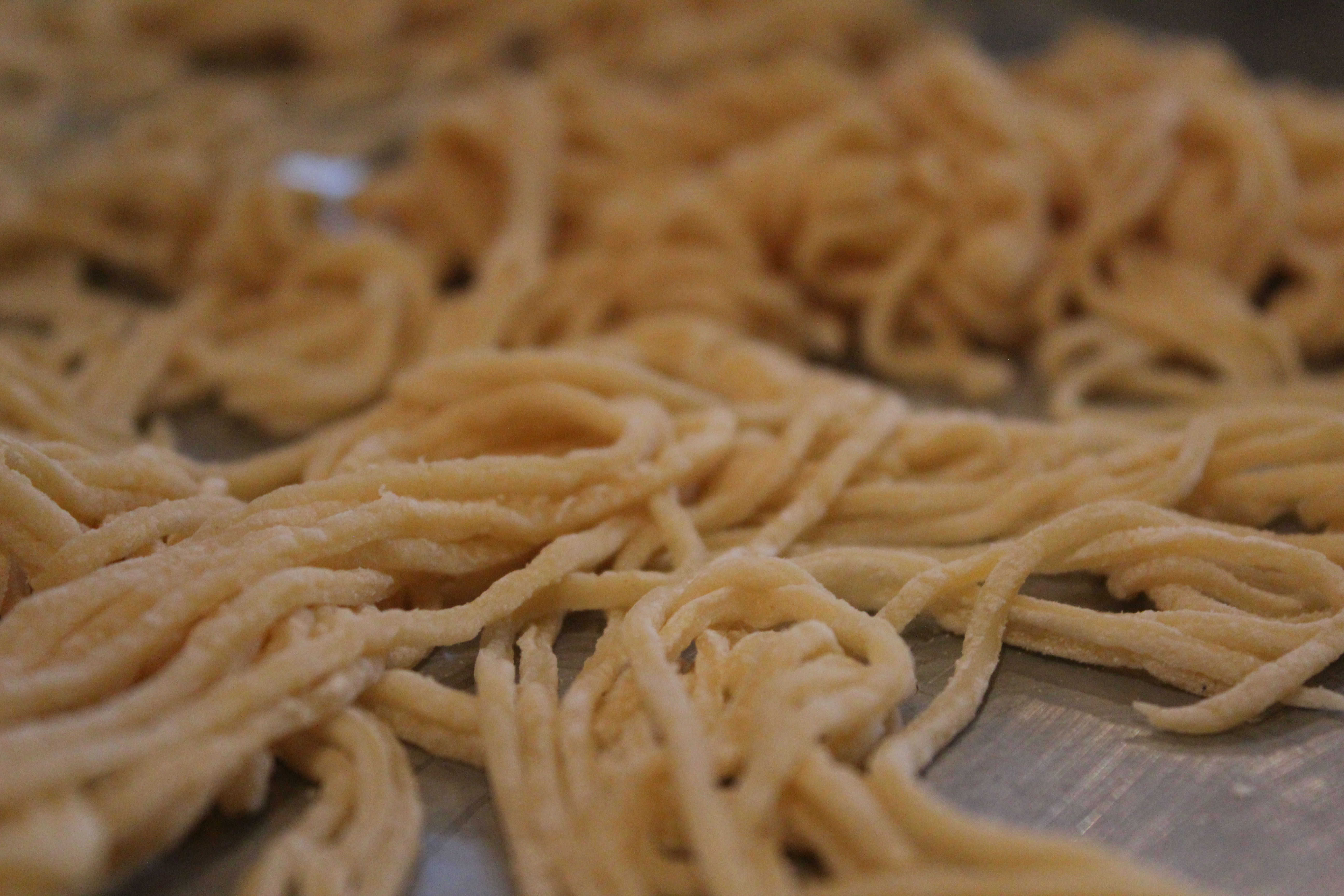 Place the spaghetti on a cookie sheet and keep working in batches. We went through a total of six eggs so it ended up factoring out to be one egg per person.