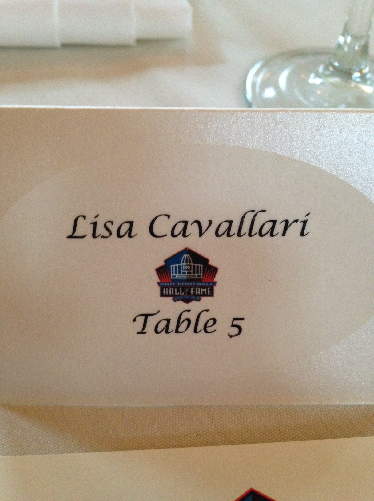 Recently, my husband and I attended a dinner honoring NFL Hall of Fame members and future inductees. This was my second time at the annual dinner and I was looking forward to meeting some of the players, enjoying some drinks and most of all, hearing some of their amazing stories. Now, let me make it very clear that I am not a huge fan of watching football. Maybe I will watch a play or two throughout the season, but I quickly lose interest and focus on something like Pinterest or checking the weather. 🙂 At this dinner it’s different because the player’s passion shines through and captures my attention. We get to hear stories from their perspective when it’s 40 below zero up in Green Bay and how some of the words from the stadium carry over the field as they are about to make their play. (Guess I better keep my voice down if I’m announcing a bathroom break or I’m ready for another beer at a game this fall. )