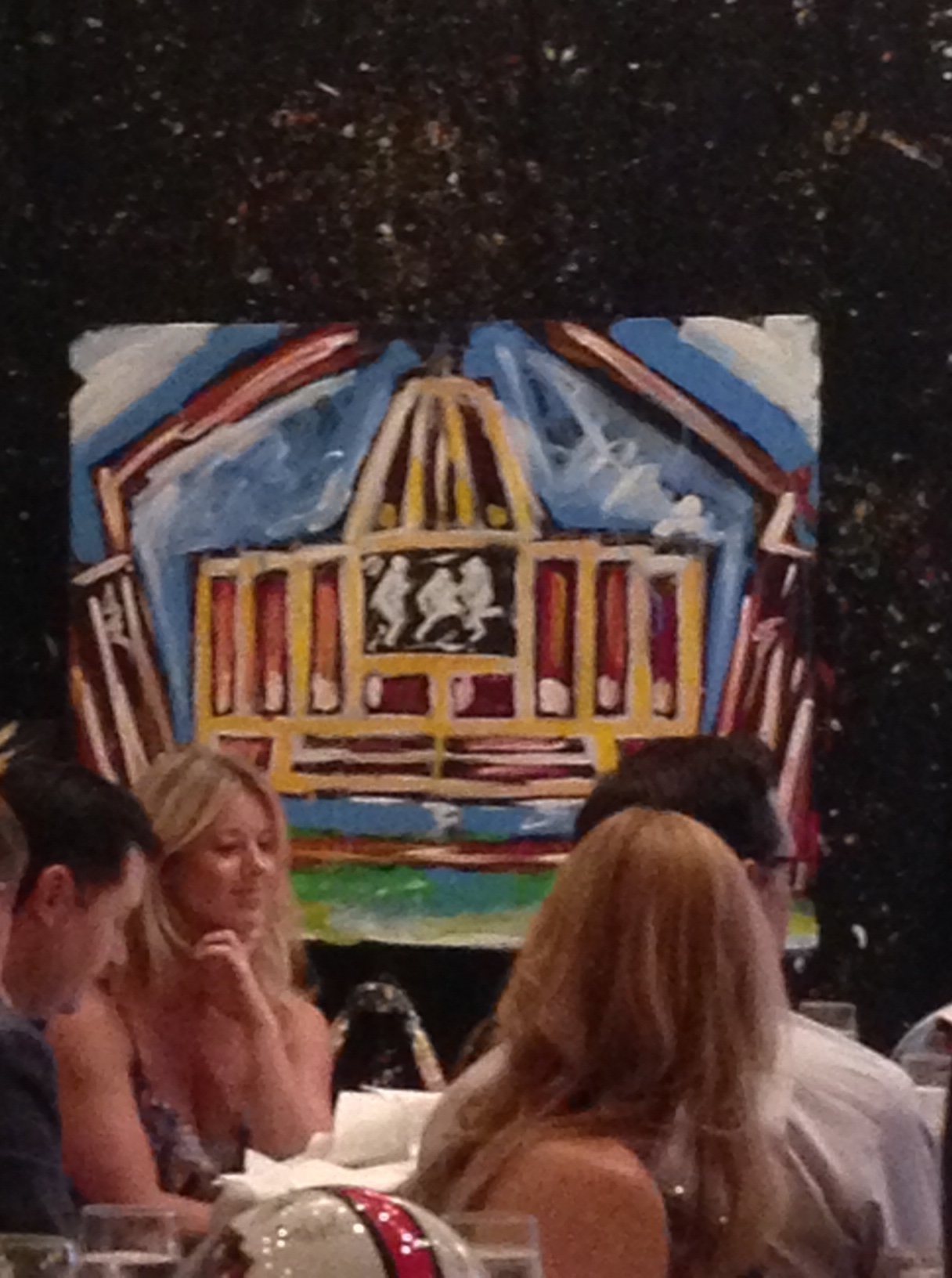 A local artist from Artbeat Live painted while dinner was served. He worked quickly and played music while he painted. It was pretty interesting to watch him turn the painting upside down and right side up. I wasn’t sure which way it went until the very end when it all came together. I think it took him less than 10 minutes to paint this work of art.