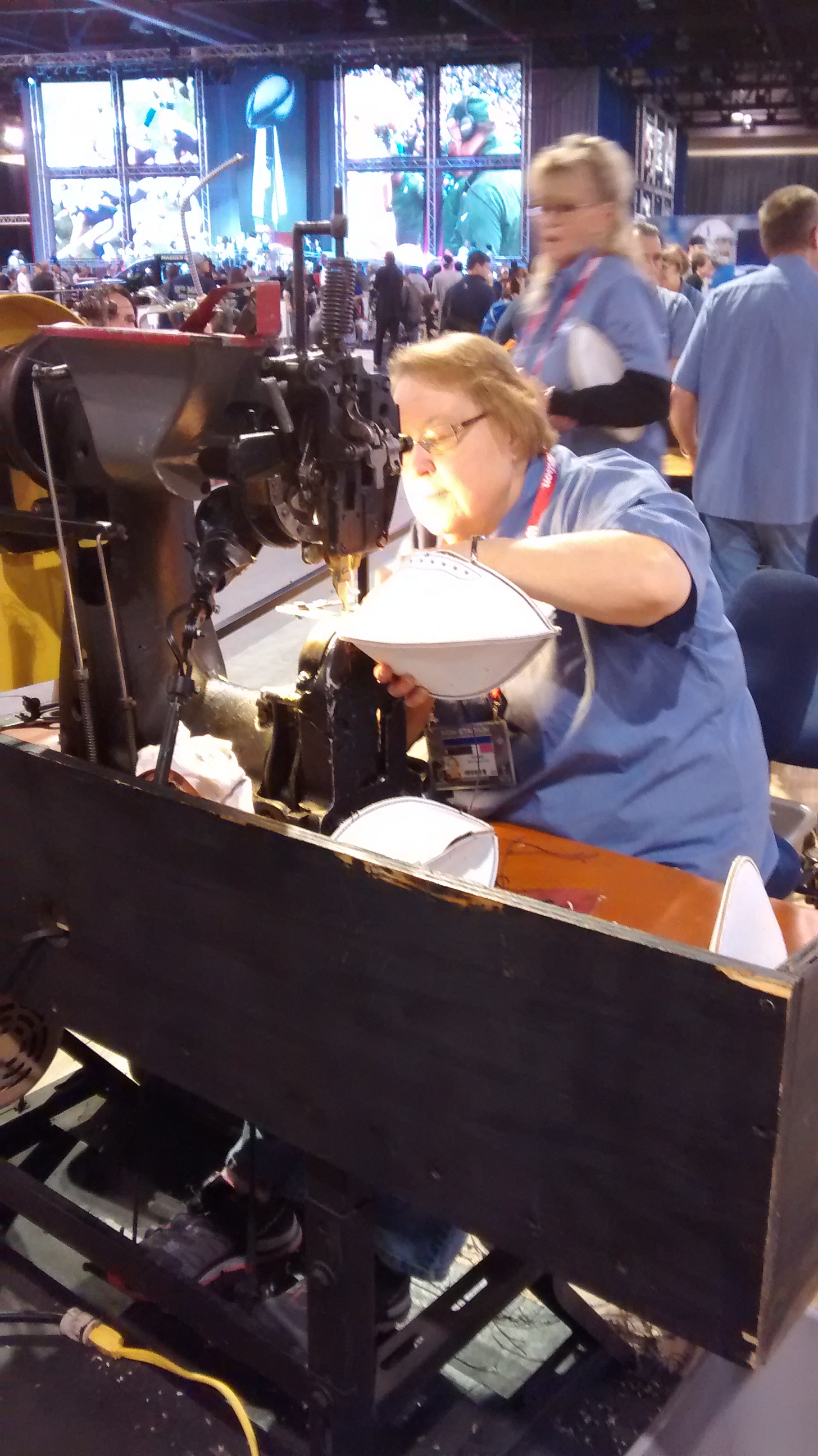 Wilson (the official ball for the NFL) sold footballs made by hand right in front you. They start off by sewing the football.